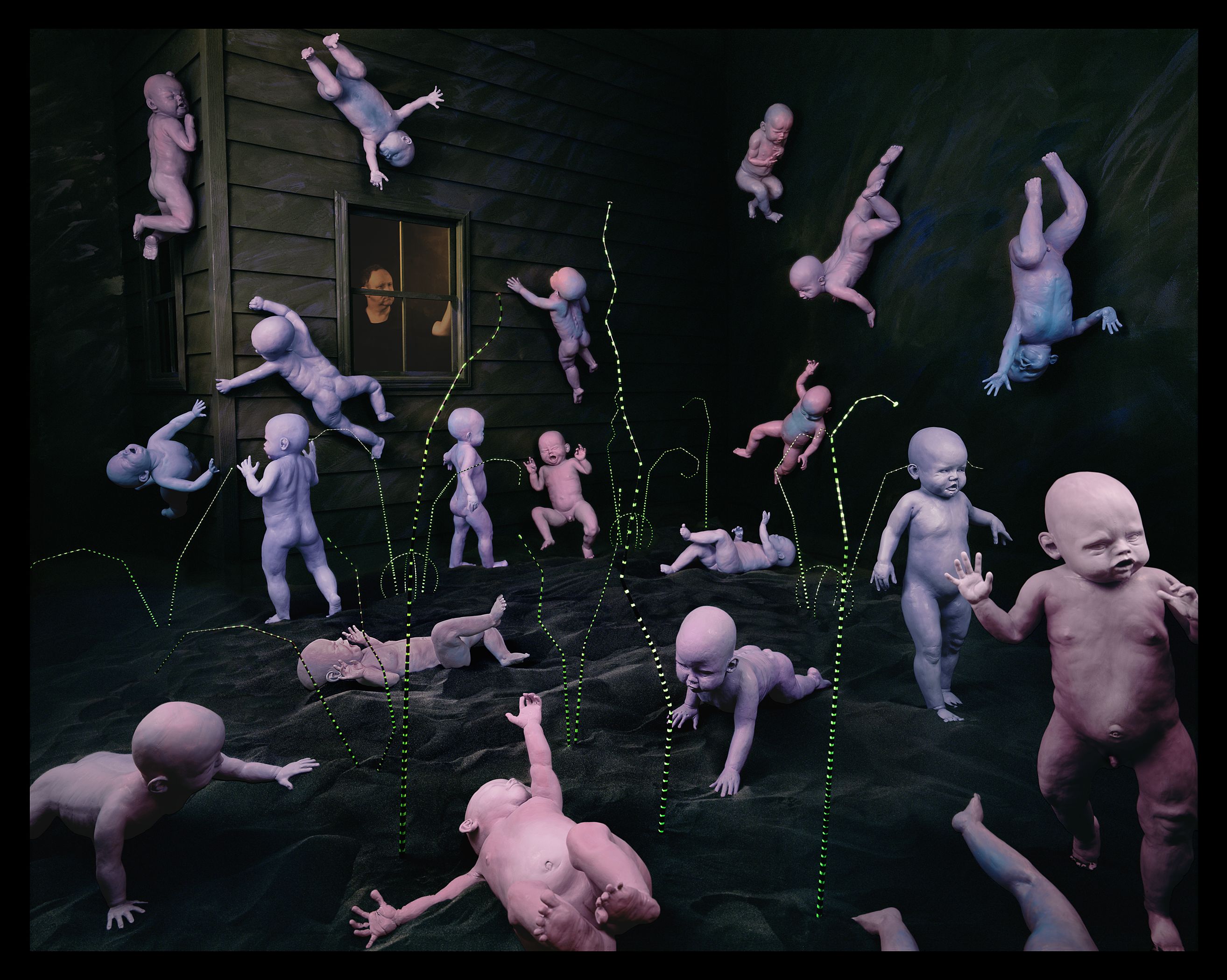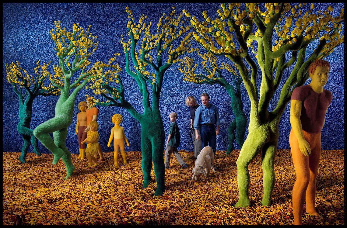 Sandy Skoglund attraverso le sue scenografie create manualmente, ci trasporta in un mondo surreale e fantastico, le sue opere sono caratterizzate da una straordinaria quantità di oggetti, di forme e di colori.
